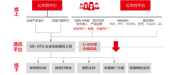 硕创优普1+N专项市场活动,通过网络与线下体验会相结合的方式,让新老用户快速体验产品价值与管理价值,全面升级到U8+新产品,帮助伙伴客户经营效益最大化。同时伙伴还可以实时在线申请专家及顾问资源,定向远程支持伙伴的市场活动,帮助伙伴缩短销售周期,加快落单,赢得更多的利润!